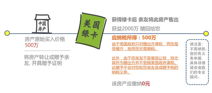方案三:您在绿卡拿到之前,在国内有一套房产,将之赠予亲友,获得绿卡后, 再赠回: